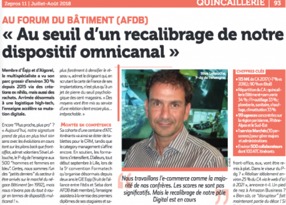 Au Forum du Bâtiment a intégré en 2018 le Top 8 quincaillerie de ZEPROS, une reconnaissance de sa transformation et de sa dynamique de croissance.